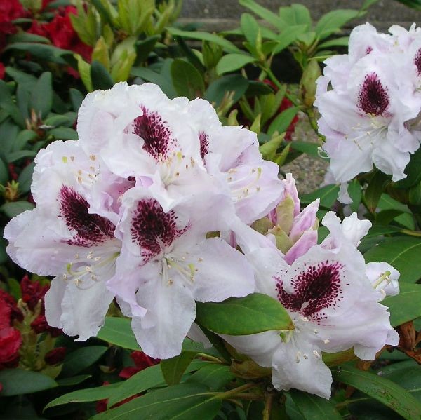 Kaunis alppiruusu, jonka valkoisia kukkia koristavat tummat täplät. Kukkii parhaiten valoisilla kasvupaikoilla, jossa myös kasvu on kauneinta.