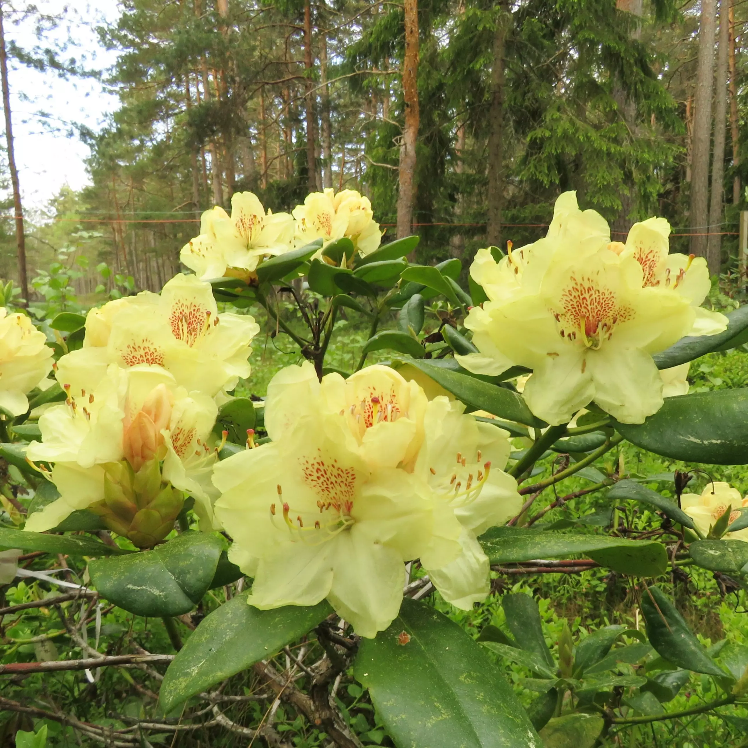 Suomessa jalostettu upea alppiruusu, jonka punertavan kellanoransseista nupuista aukeavat keltaiset kukat. Niiden yläterälehtiä koristaa punainen täplitys.