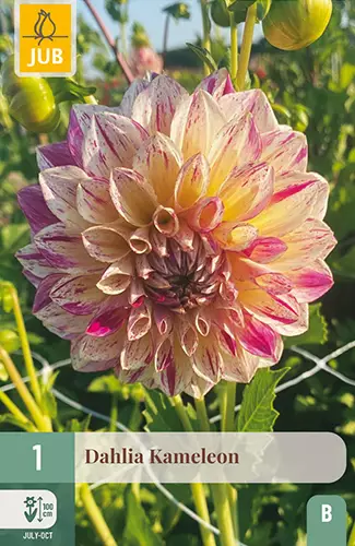 Kaunis monivärinen daalia, jonka kukasta löytyy vaaleanpunaisen, keltaisen ja valkoisen sävyjä. Kukinta on kerroksellista.