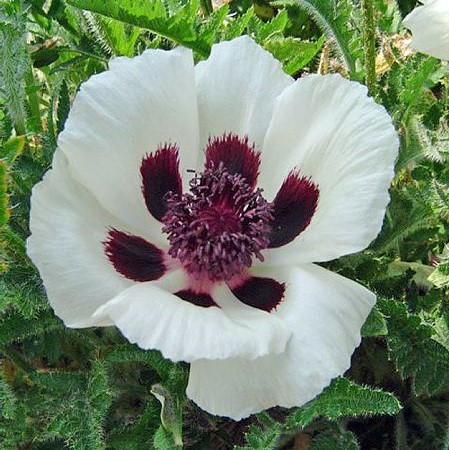 Puhtaanvalkoiset suuret terälehdet sekä tumma keskusta luovat yhdessä yksinkertaisen, mutta erittäin kauniin kokonaisuuden.