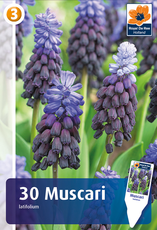 Grape Hyacinth -suvun hyasintti tuottaa ainutlaatuiset kaksisävyiset kukkarypäleet. Pitkäkestoiset kukat avautuvat myöhään keväällä. Korkeus 15 - 25 CM. Kukinta-aika: maaliskuu - huhtikuu.