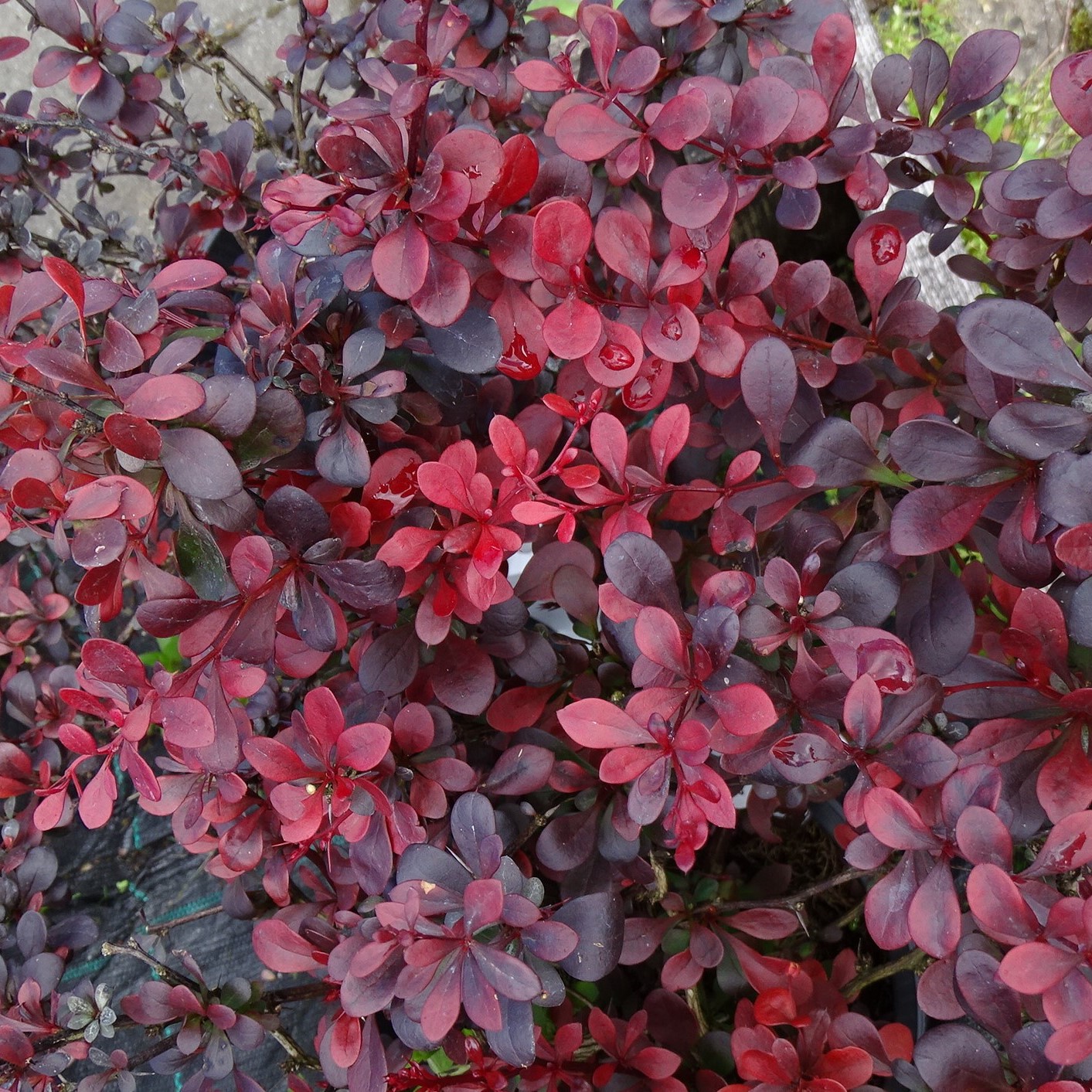 Koko kesän tumman purppuralehtinen kaunis pieni pensas. Kasvultaan pyöreähkö, oksat sivulle hieman kaartuvia.