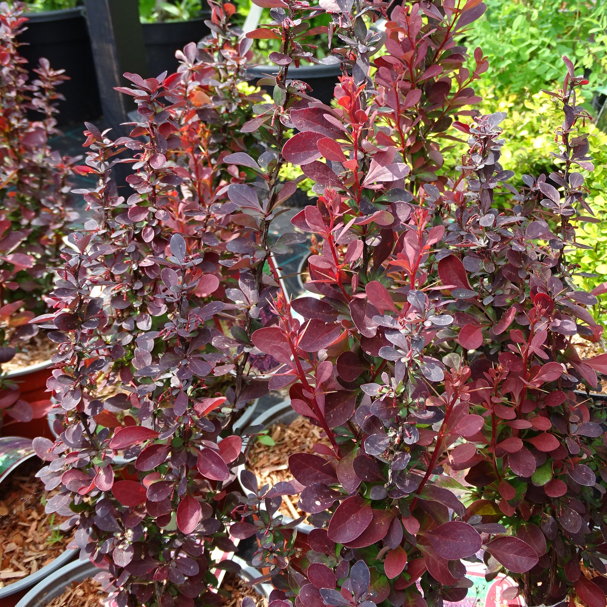 Pystykasvuinen, tummanpunertavalehtinen happomarja. Upea tuomaan väriä sekä pilarimaista kasvumuotoa havujen ja matalien pensaiden vierelle.
