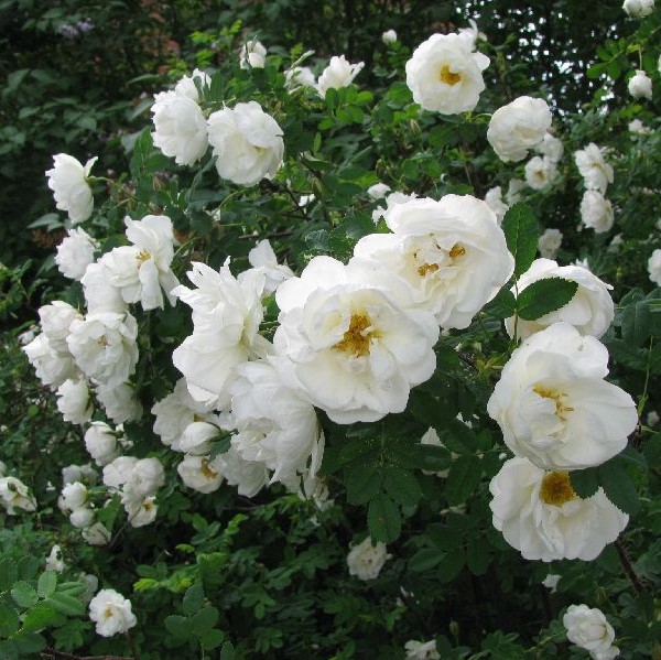 Juhannusruusu on suomalaisten suuresti rakastama, alkukesän ihanan tuoksuinen valkokukkainen kaunotar. Se kukkii runsaasti juhannuksen aikaan edellisvuoden versoilla. Kasvaa tiheäksi ja leveäksi kasvustoiksi melko nopeasti ja leviää myös juurivesoilla. Varma ja kestävä valinta aloittelevallekin ruusuharrastajalle, menestyy monenlaisella kasvupaikalla. Sopii etenkin vanhoihin pihapiireihin. Istutusetäisyys 0,7-1 m.