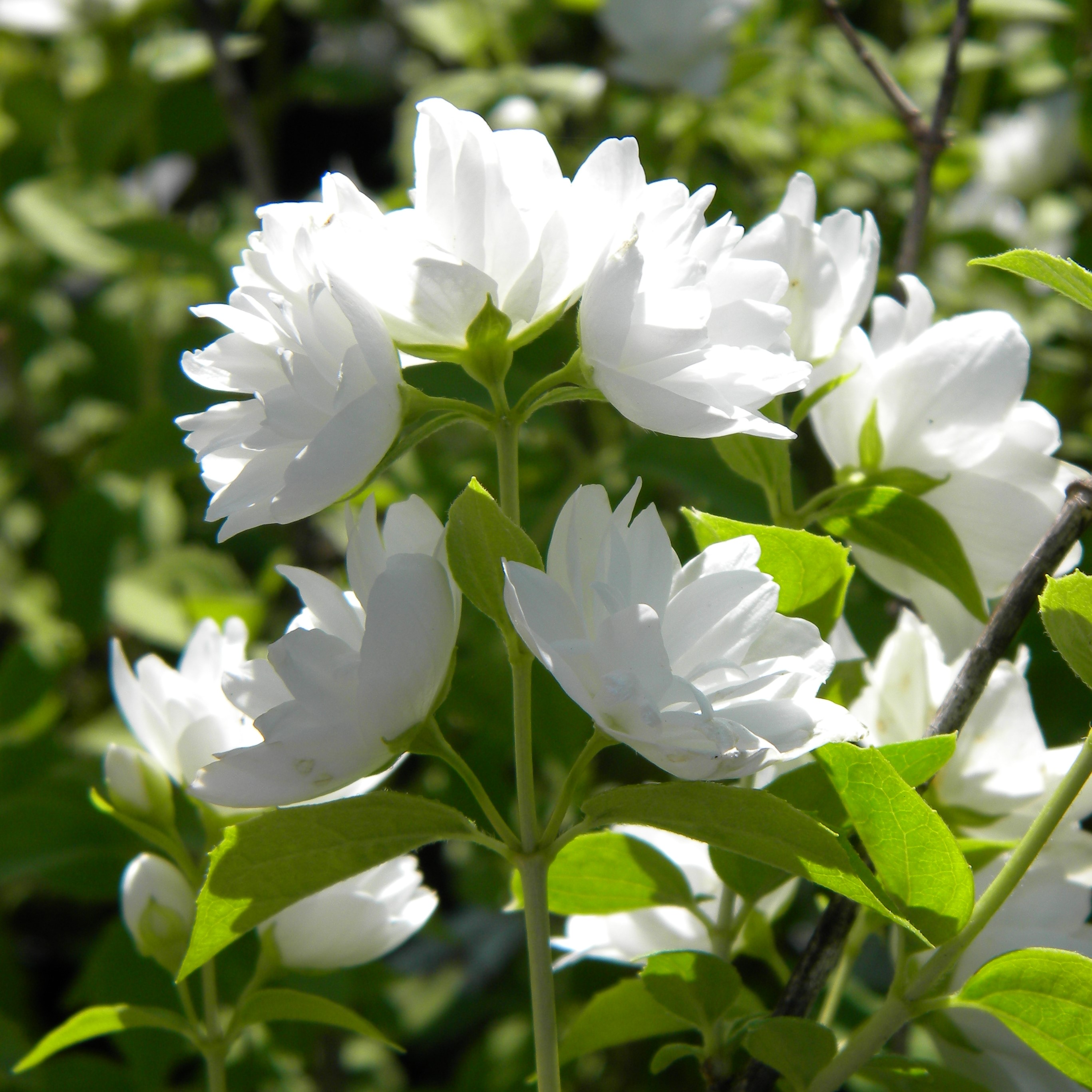 Kerrottukukkaisen kameliajasmikkeen kukat ovat puhtaanvalkoiset ja ihanasti tuoksuvat. Kukkii upeasti heinäkuun puolivälistä alkaen.