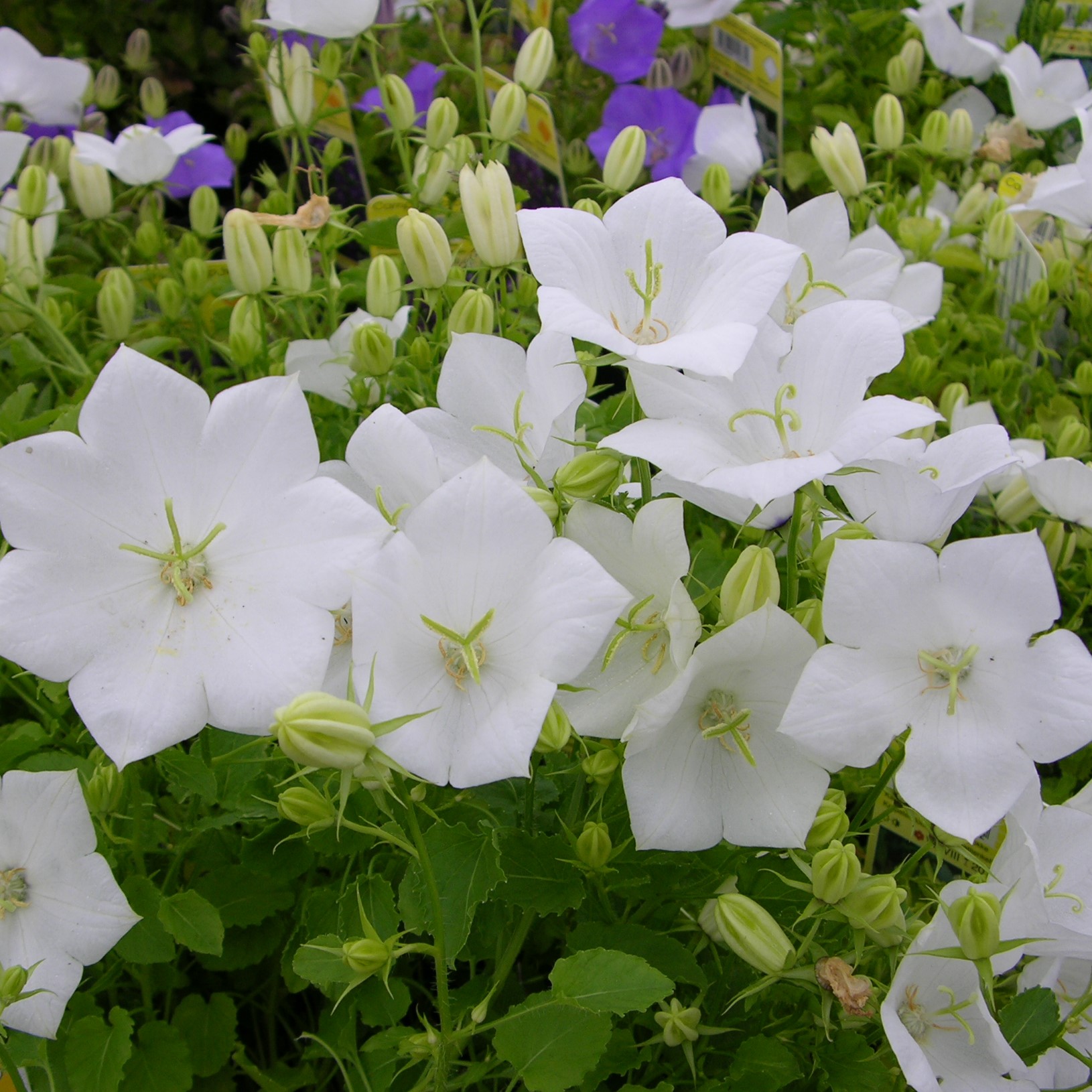Monelle tuttu karpaattienkello kukkii runsaasti keskikesän puutarhassa.