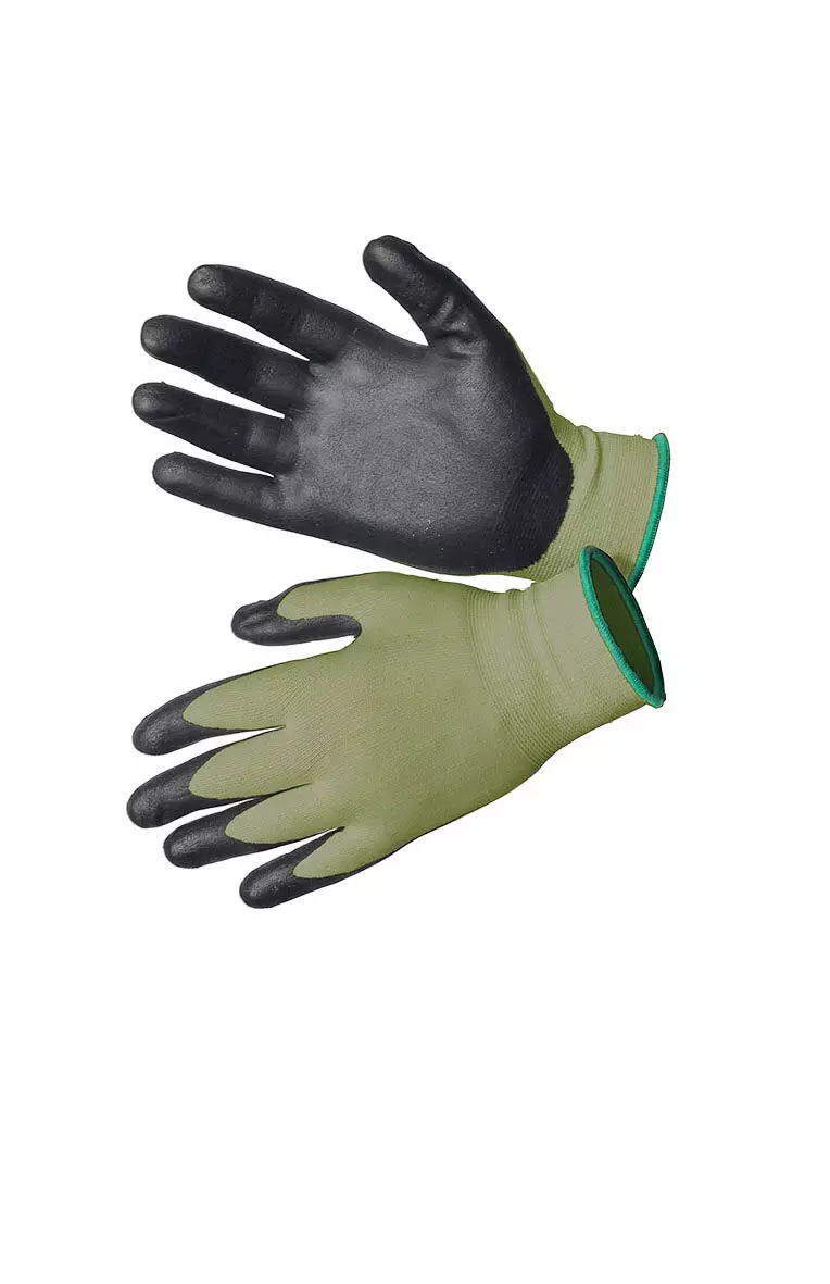 Ohut ja taipuisa käsine tarkkuutta vaativaan, kevyempään puutarhatyöhön. Sopii vihannesten ja kukkien keräämiseen. Nailonia ja hiilikuitua, kastettu polyuretaaniin (PU).