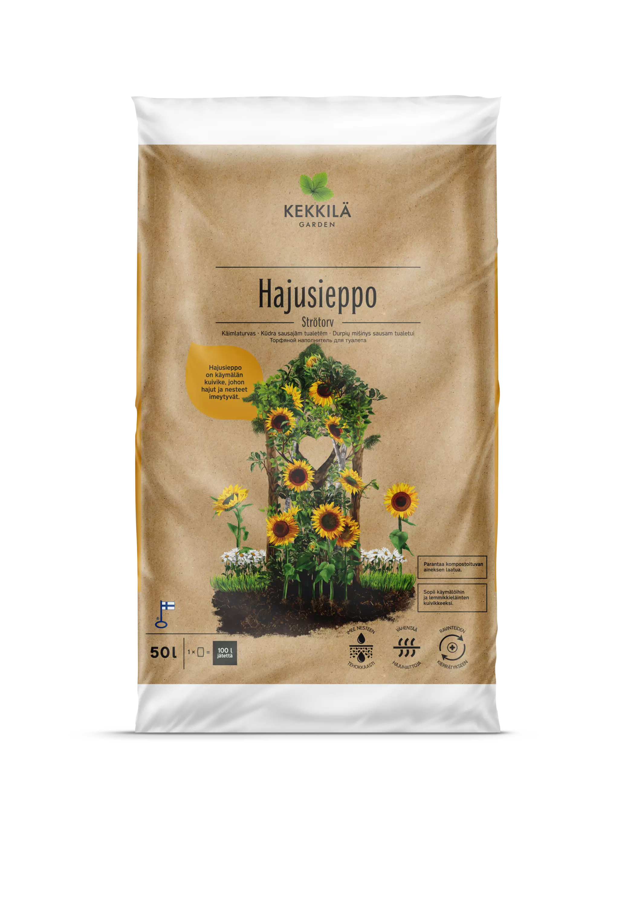Valmistettu rahkaturpeesta ja kutterilastusta.