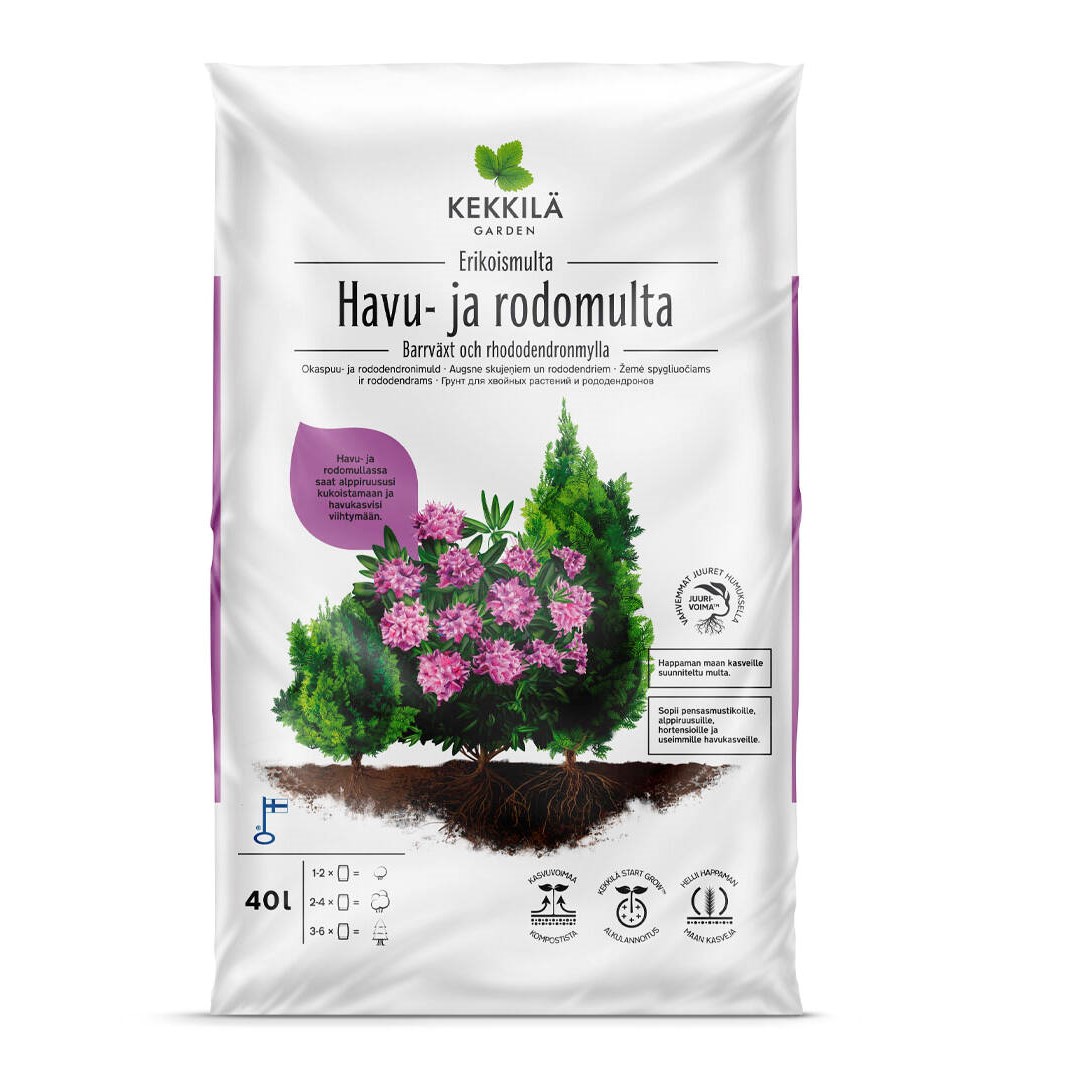 Kekkilä Havu- ja rodomulta on korkealaatuinen ja käyttövalmis multa hapanta maata suosivien kasvien tarpeisiin. Se sopii alppiruusuille, atsaleoillle, pensasmustikoille, hortensioille sekä useimmille havukasveille.