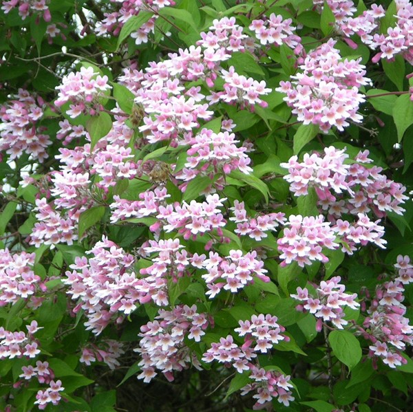 Kotimainen runsaskukkainen kellokuusama, jonka vaaleanpunaiset, vienosti tuoksuvat kellomaiset kukat kehittyvät kauniisti kaartuviin oksiin.