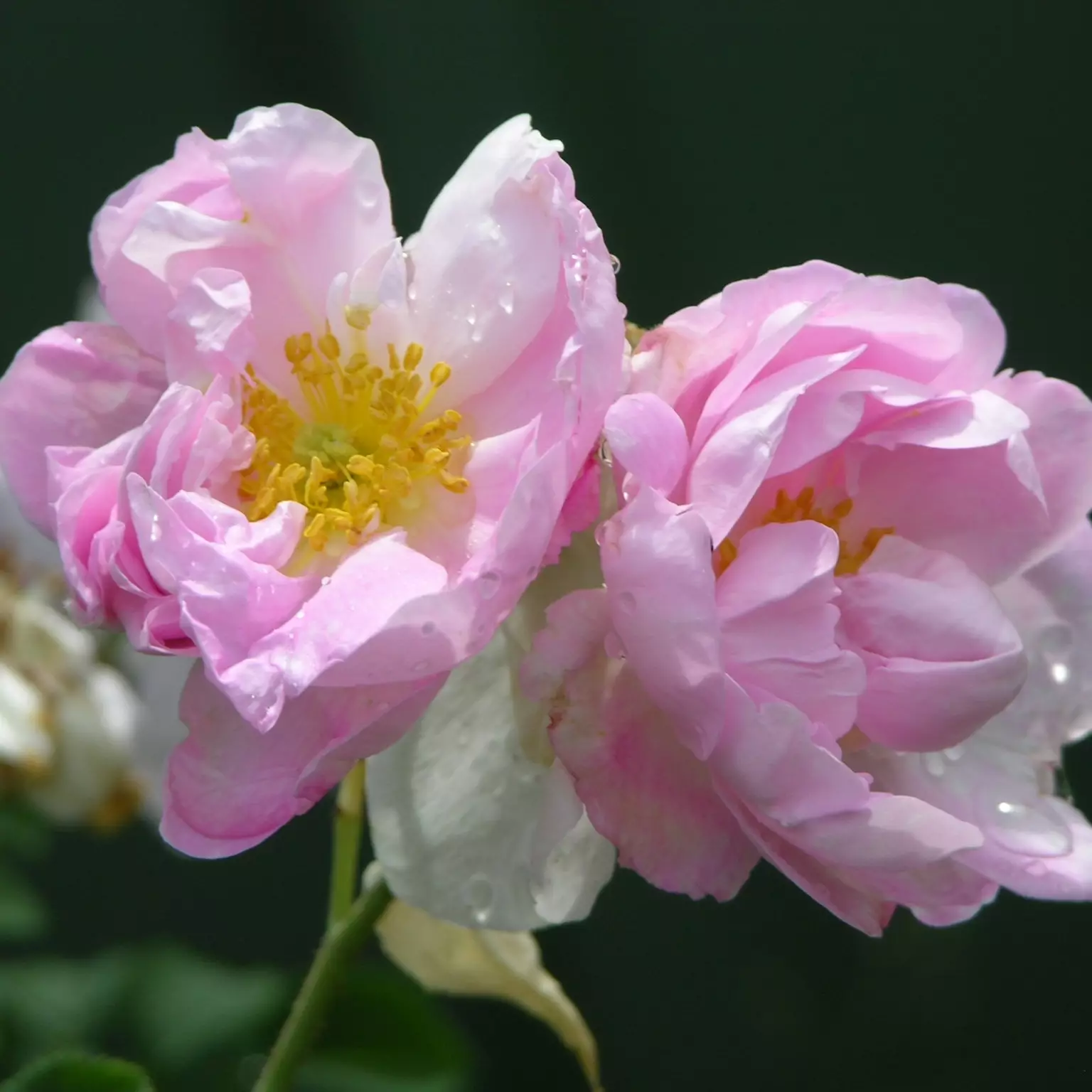 Ihanasti tuoksuvat suuret kukat. Väriltään ne ovat aluksi vaaleanpunaiset, myöhemmin lähes valkoiset. Kukinta-aikana pensas onkin ihanan monisävyinen, vaaleanpunaisten ja valkoisten kukkien... Lue lisää
