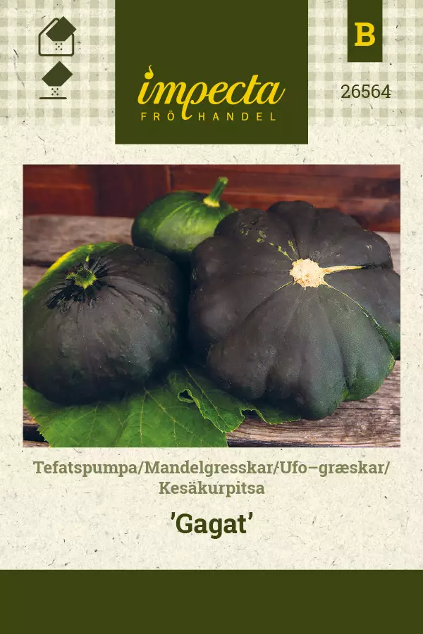 Tummanvihreä-musta simpukkamainen kurpitsa, jossa mieto maku. Pienet hedelmät voidaan syödä kokonaisina kuorineen, kuten kesäkurpitsa, ja ne sopivat säilykkeisiin. Suuremmat hedelmät sopivat... Lue lisää