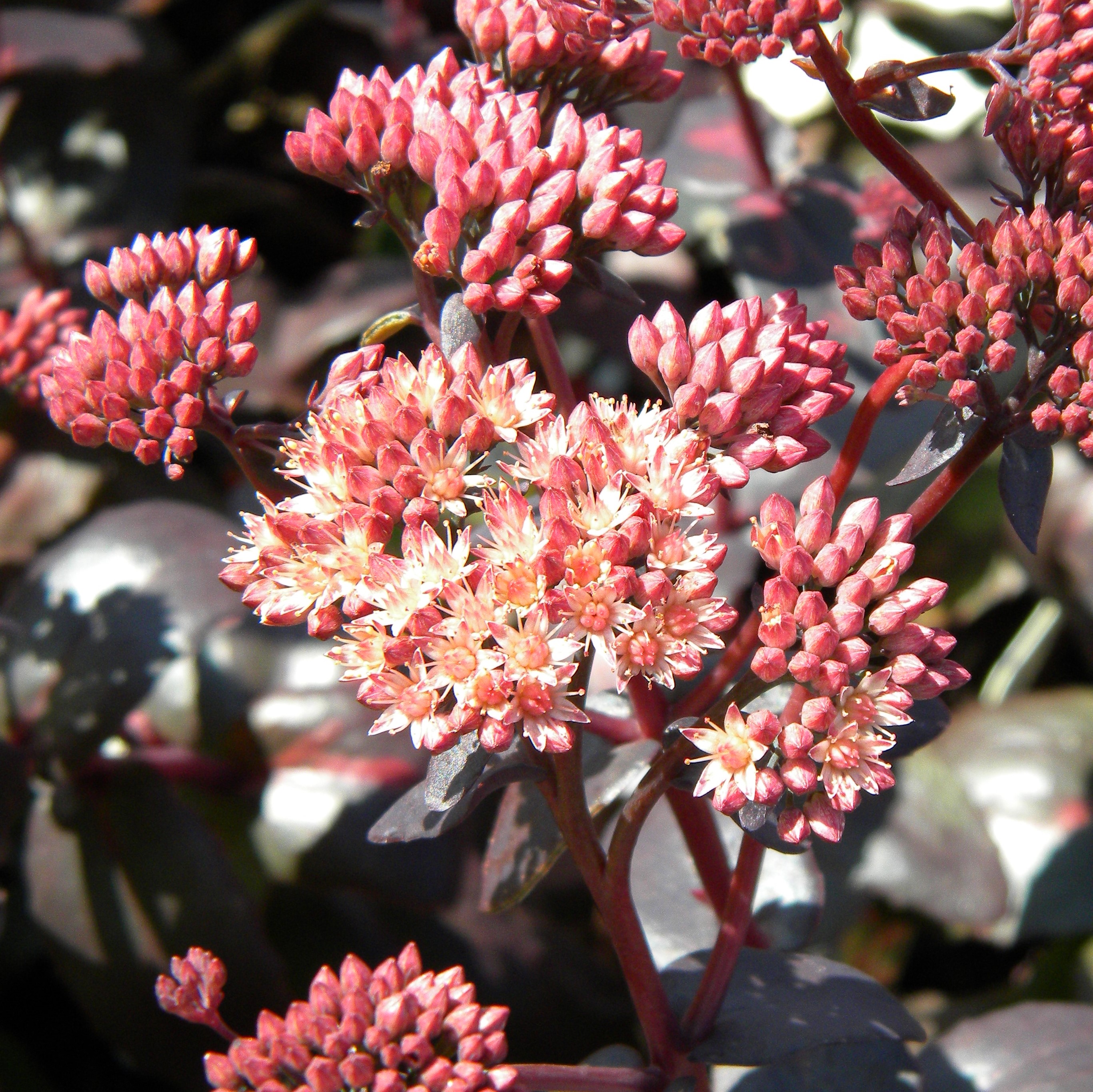 Kukkavarret ovat tanakoita ja pystyjä, tummanroosat kukat perhosten suosiossa.