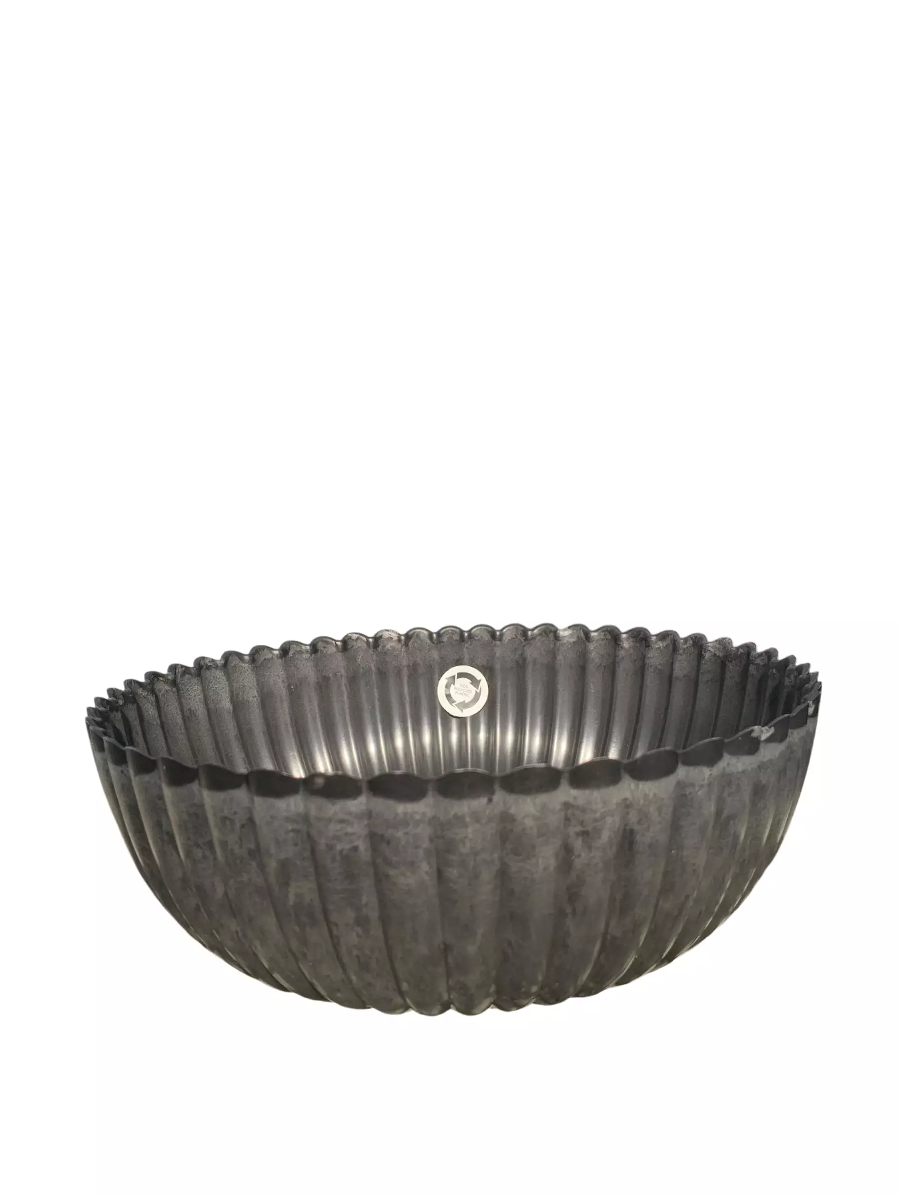 Halkaisijaltaan 24cm. Tumman harmaa muoviruukku kauniilla kuviolla.