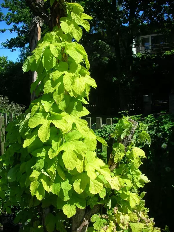 Kiipeilee narua pitkin, kaunis myös puun runkoa vastaan. Kasvaa hillitymmin kuin perinteinen vihreälehtinen humala.