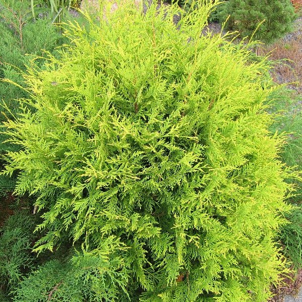 Kultapallotuija on piristävä lisä havuryhmään. Uusi kasvu on kullankeltaista ja erottuu ympärillä olevasta vihreydestä näyttävästi.