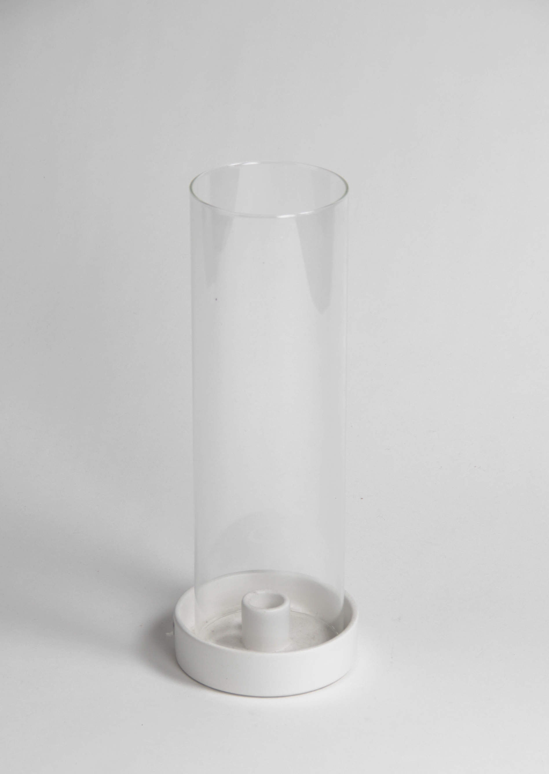 Tyylikäs, lasinen kynttilänjalka kruunukynttilälle.