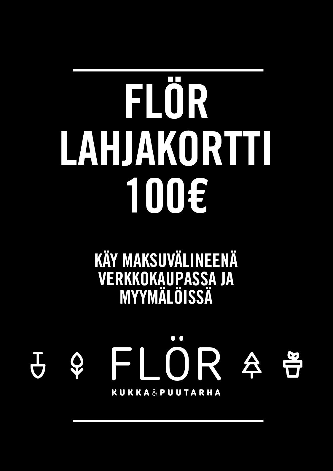 Ilahduta ystävääsi FLÖR Lahjakortilla! Lahjakortti voimassa vuoden ostopäivästä. Sopii käytettäväksi verkkokauppatilauksiin sekä myymälöissämme. Saamasi koodin voit lähettää esim. sähköpostitse sen saajalle. Lahjakortti voimassa vuoden ostopäivästä