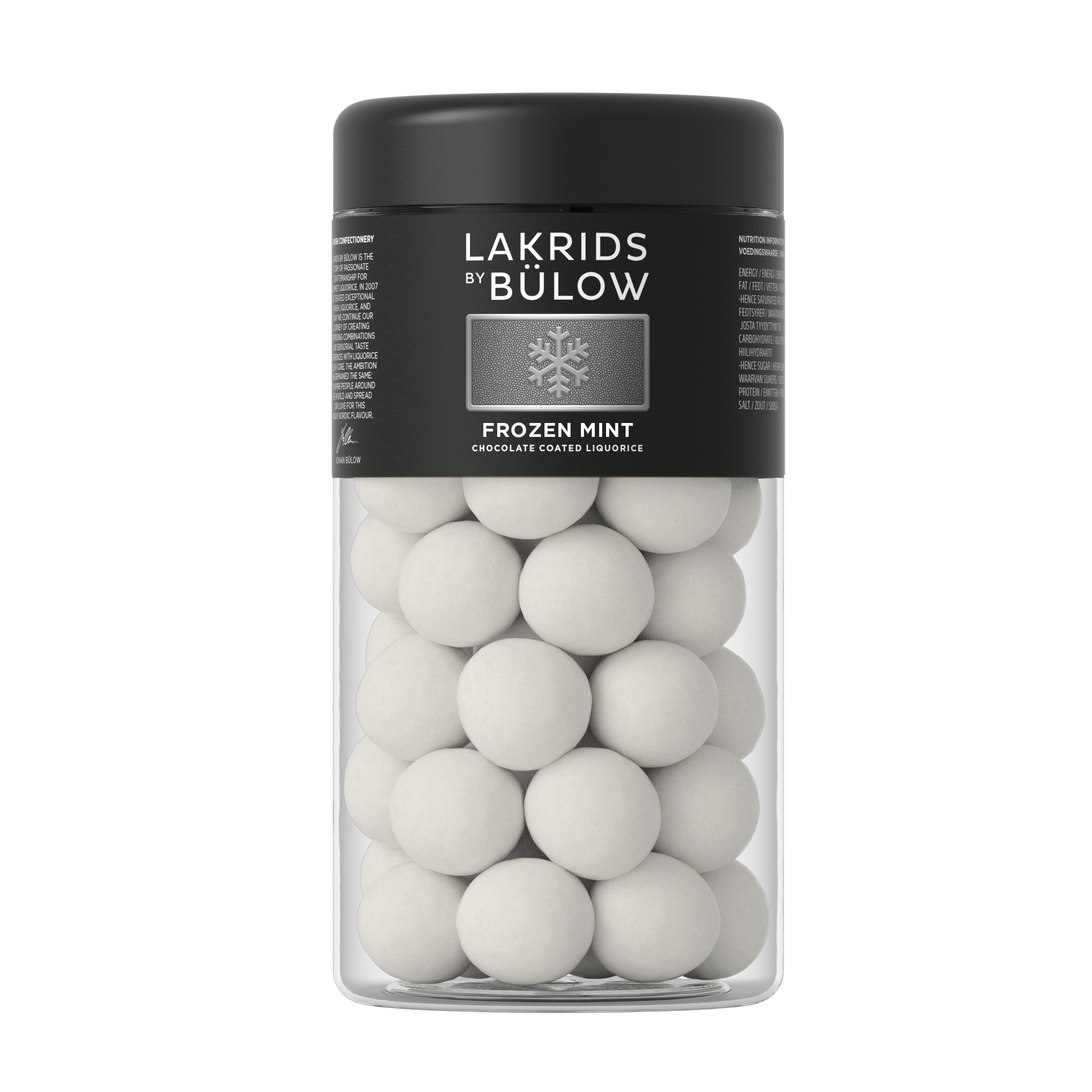 Lakrids by Bülow'n Frozen Mint varmistaa, että voit nauttia raikkaasta ja valkoisesta talvesta. Hemmottele itseäsi makealla lakritsilla ja pehmeällä maitosuklaalla, jossa on aavistus minttua. Rapean valkoinen sokerikuori tuo mieleen vastasataneen valkoisen lumen. Koko 'regular' 295g.