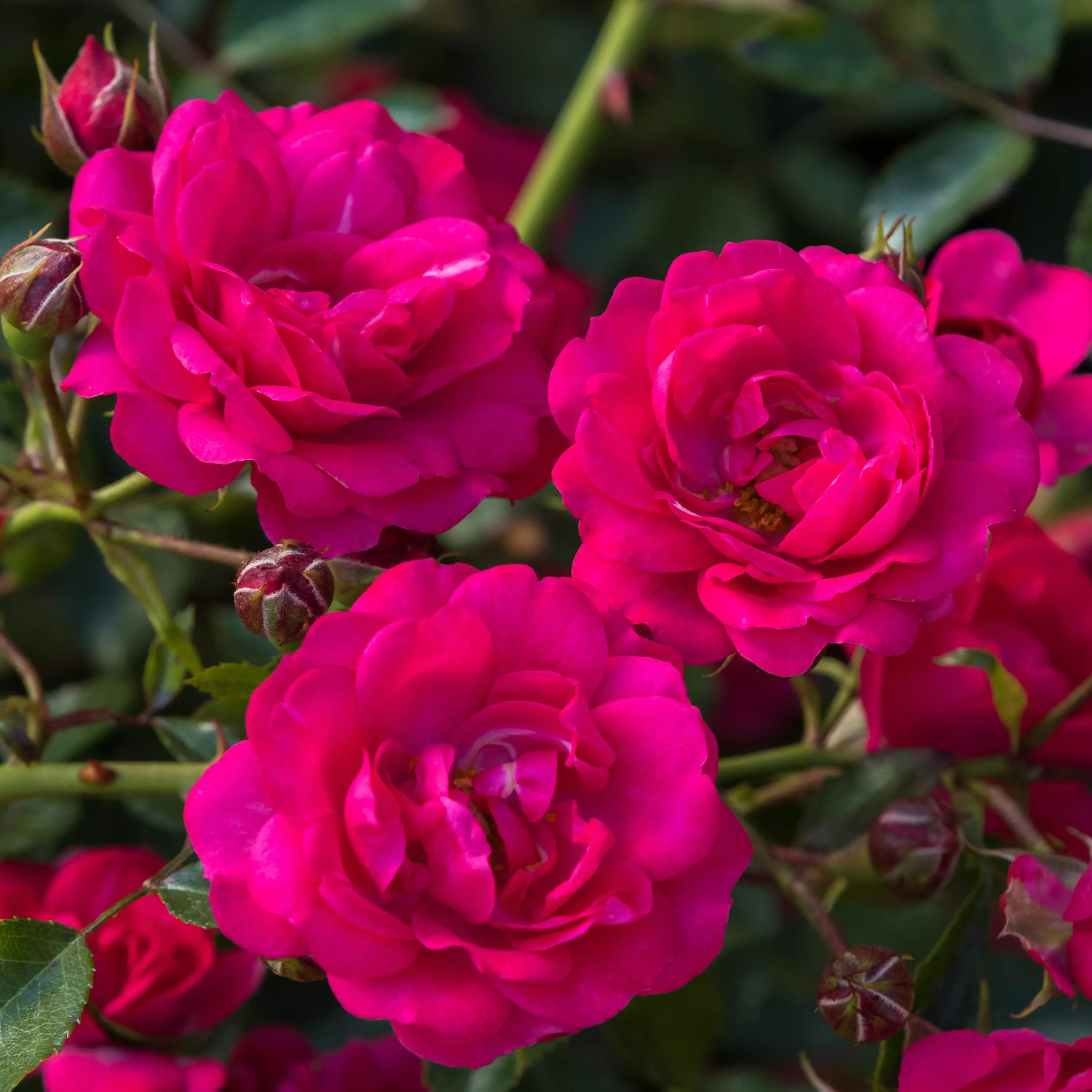 Pitkään suosittu kestävä ja terve maanpeittoruusu. Eloisa vadelmanpinkki kukinta alkaa heinäkuussa jatkuen aina syyspakkasiin saakka. Kukat ovat melko pieniä, mutta niitä kehittyy runsaasti terttuihin.
