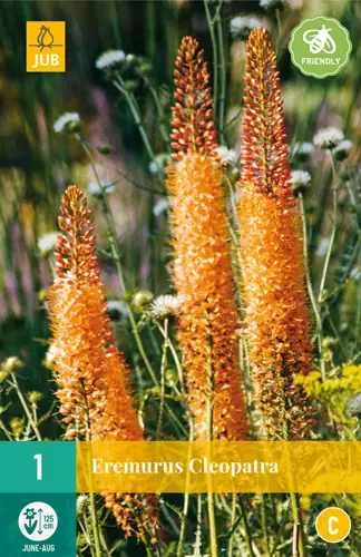 Eremurus Cleopatra on palkitseva kesäkukkija. Eremurus Cleopatra kukkii pitkillä vaaleanpunaisilla kukilla kesä-elokuussa. Eremurus Cleopatra kasvaa noin 125 cm korkeaksi. Joskus on tarpeen tukea kukkavarsia.