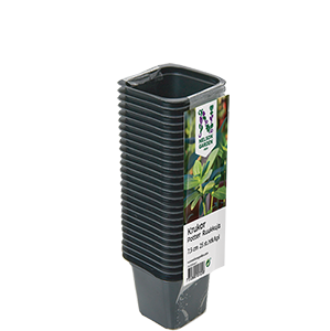 Neliskulmainen musta muoviruukku esikasvatukseen ja taimien koulintaan. Sopii pienoiskasvihuoneeseen ja taimikasvatuslaatikkoon.