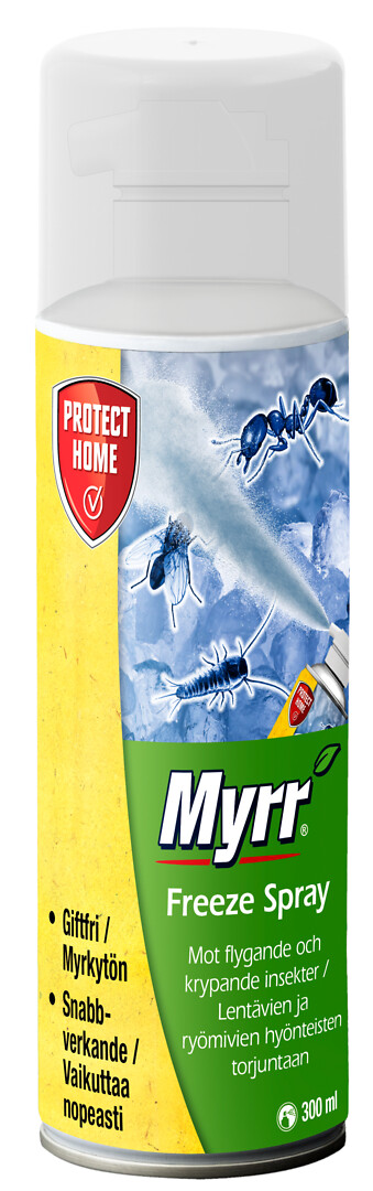 Myrr Freeze spray soveltuu lentävien ja ryömivien hyönteisten