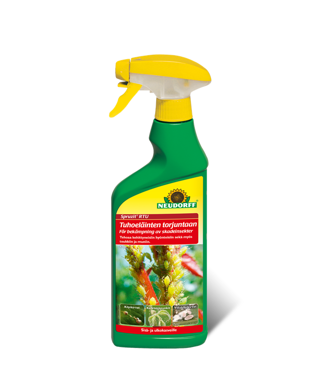 Luonnonmukainen Spruzit Tuhohyönteisten torjunta-aine on helppokäyttöinen ja laaja-alaisesti vaikuttava ruiskute vahingollisten, imevien hyönteisten torjuntaan.