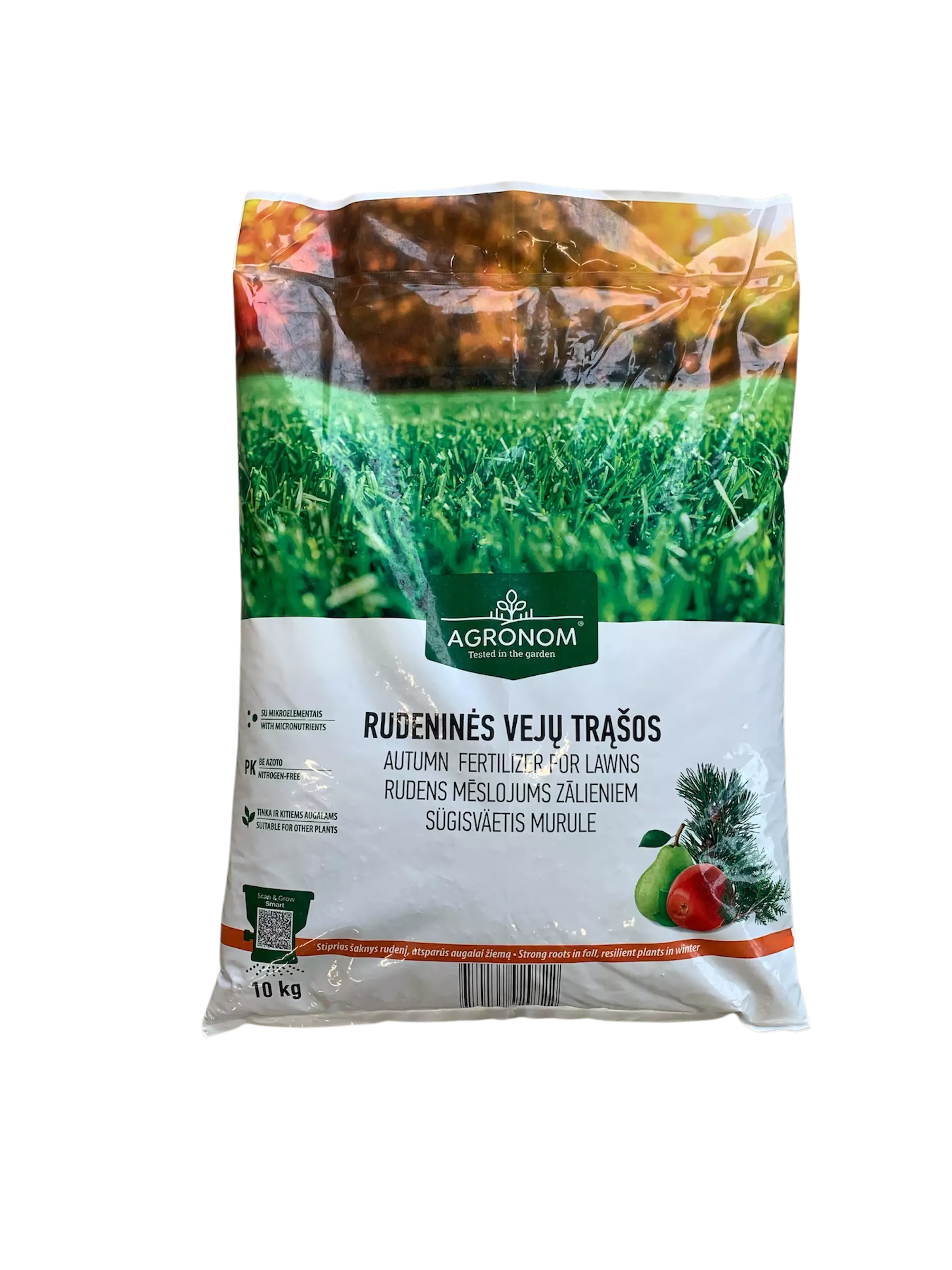 10kg nurmikon syyslannoite, jota voidaan käyttää myös syötäville sekä koristekasveille.