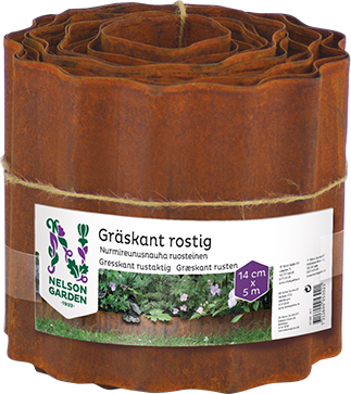 Metallinen, ruostepintainen nurmireunus. Asetetaan nurmikon ja kukkapenkin väliin, jotta ruoho ei leviä kukkapenkkiin. Käsitelty värjäämisen estämiseksi. Käytä suoriin ja muotoiltuihin alueisiin.