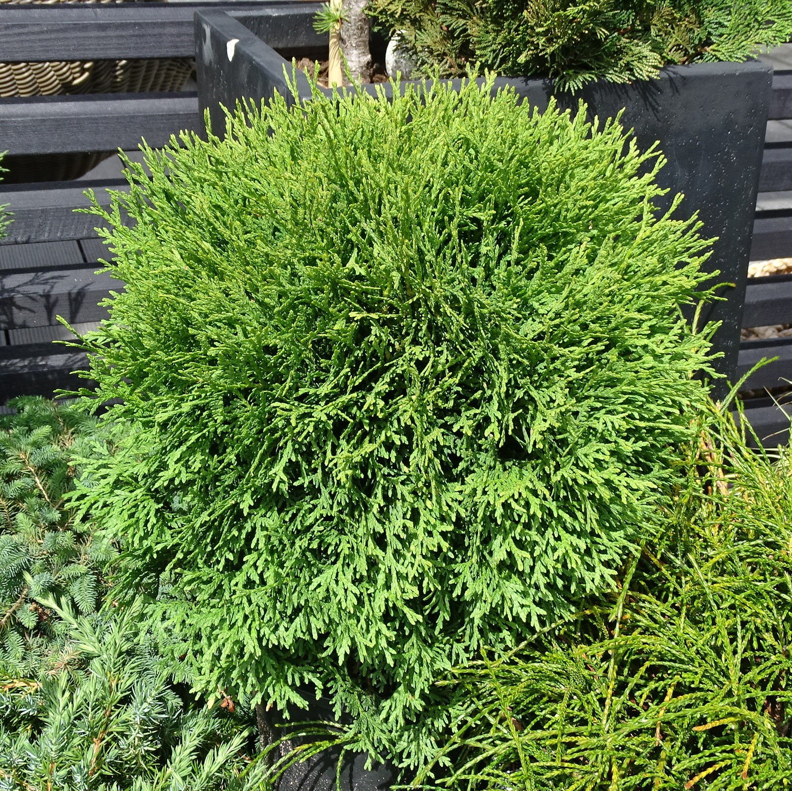 Kaunis ja kestävä pallotuija, josta kasvaa melko nopeasti tuuhea ja säännöllisen muotoinen havupallo. Sopeutuvainen kasvupaikkaansa nähden, mutta viihtyy parhaiten multavassa ja tuoreessa maassa.
