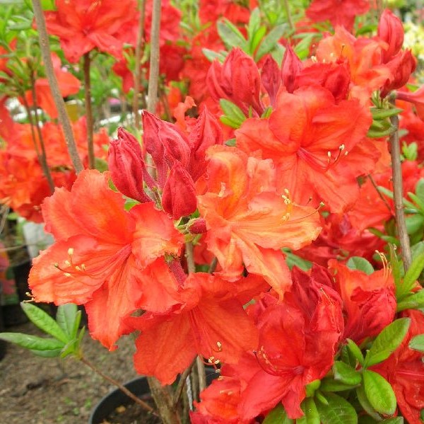 Erityisen näyttävä puistoatsalea, jonka kukat ovat suuria ja loistavan oranssinpunaisia. Tuo väriä alkukesän istutusryhmiin upeasti ja erottuu puutarhassa jo kauas.