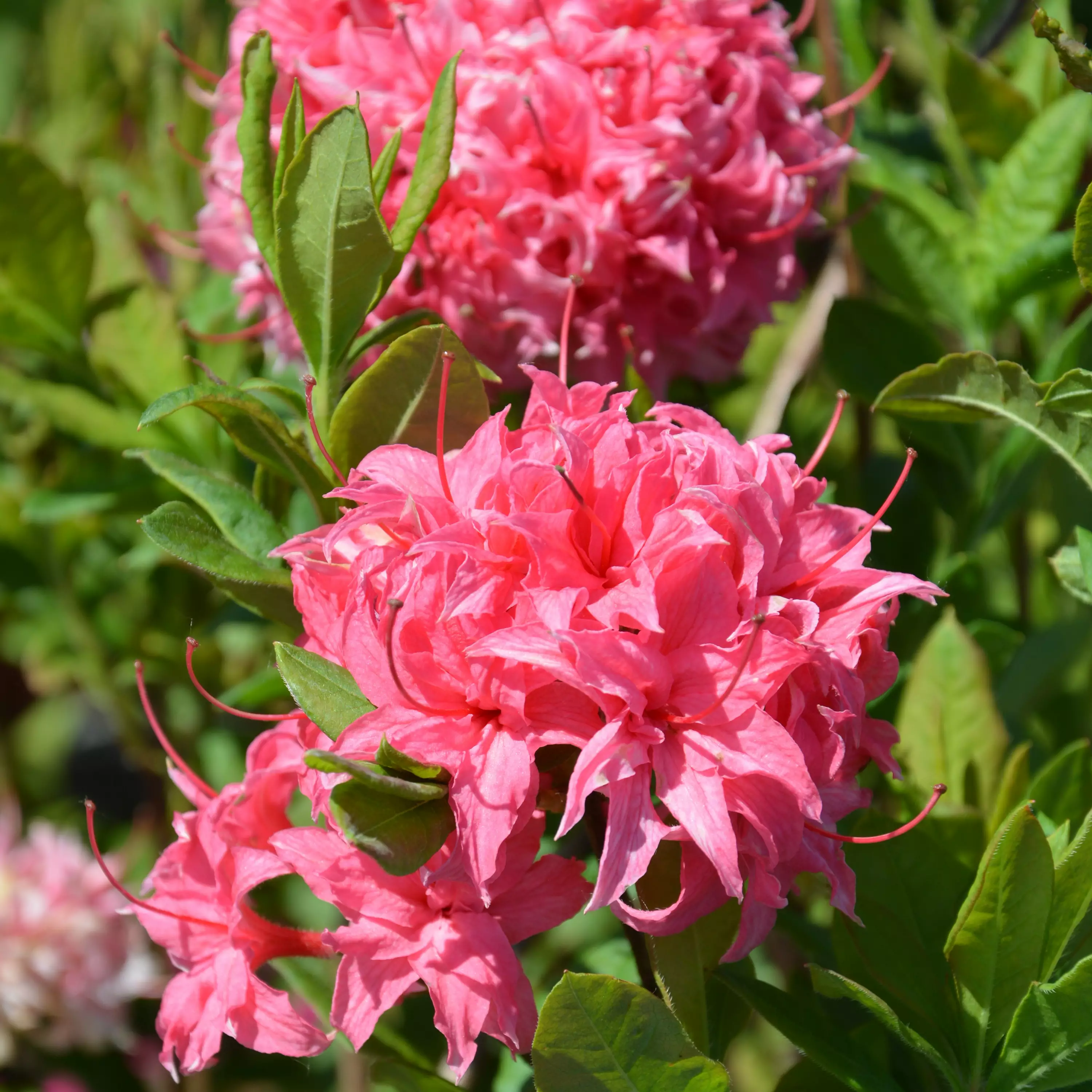 Ihastuttava vaaleanpunainen, kerrottukukkainen atsalea. Suuret pallomaiset kukinnot muodostuvat lukuisista puolikerrotuista kukista tehden kukinnasta erityisen näyttävän.