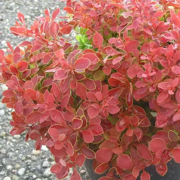 Viehättävä pienikokoinen pensas, jonka lehdet ovat koko kesän punaisen purppuraiset ja reunoiltaan kullankeltaiset. Syksyllä lehdistö saa vielä erityisen hehkuvan loiston. Kasvultaan tuuhea ja tasaisen pyöreähkö, hieman piikkinenkin. Parhaimmillaan kivikkoryhmissä, havukasvien ja luonnonkivien vierellä. Kestää hyvin kuivuutta, ilmansaasteita ja auringonpaahdetta. Sopii myös ruukkuistutuksiin.