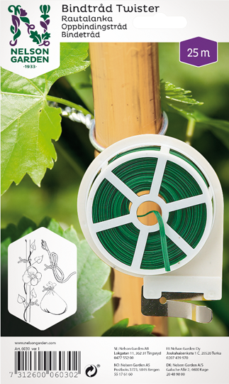Litteä muovitettu rautalanka sidontaan, katkaisin.