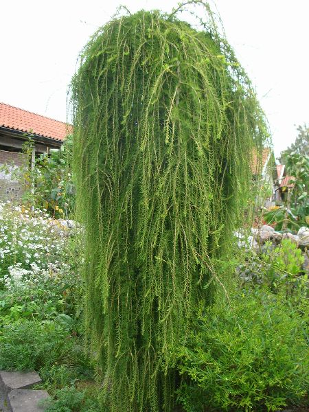 Stiff Weeper -lehtikuusen latvus kasvaa sateenvarjomaiseksi, kapean riippuvaksi ja tuuheaksi. Neulaset ovat keväällä heleänvihreät, syksyllä ne saavat kauniin keltaisen syysvärityksen.