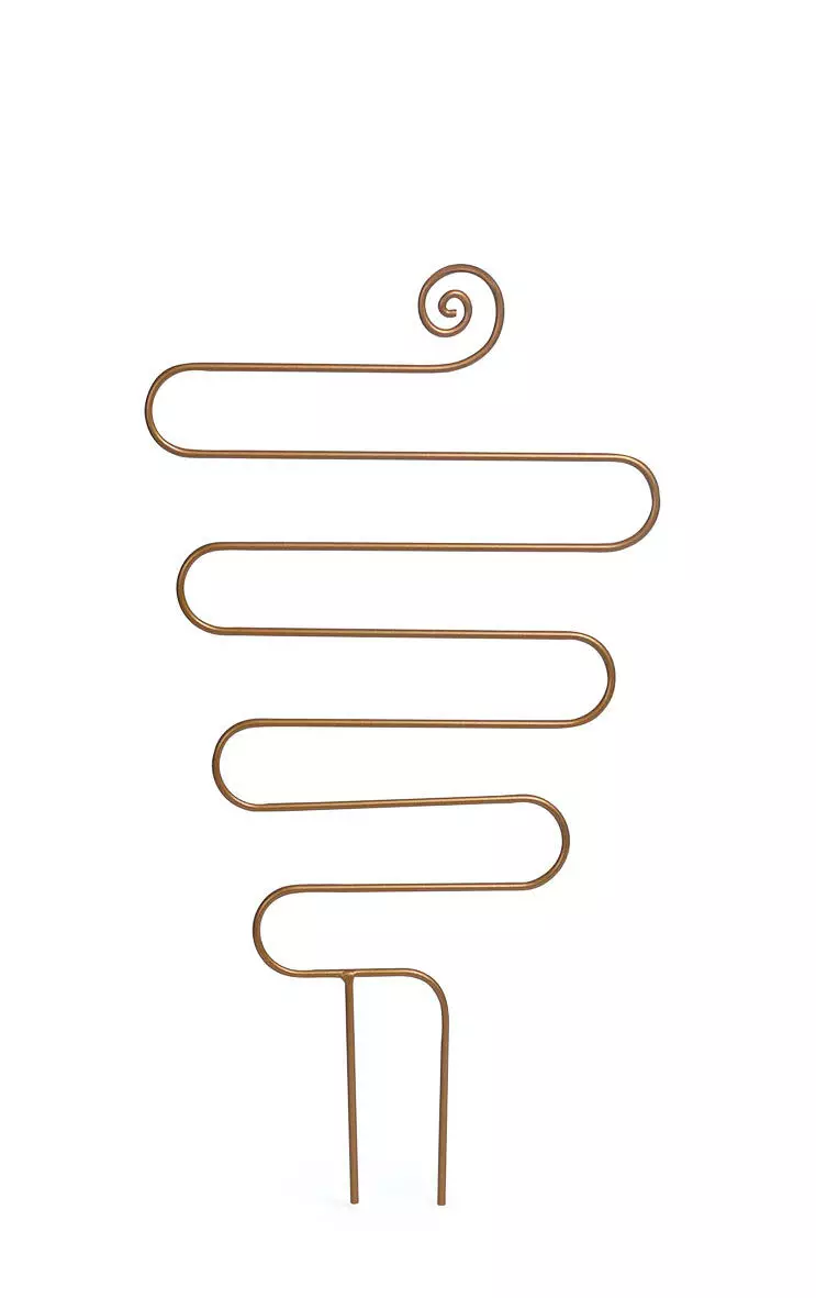 Ruukkuristikko messinkivärisestä teräksestä, elegantisti muotoiltu. Sopii suuremmille ruukuille ja avomaalle. Korkeus 140 cm.