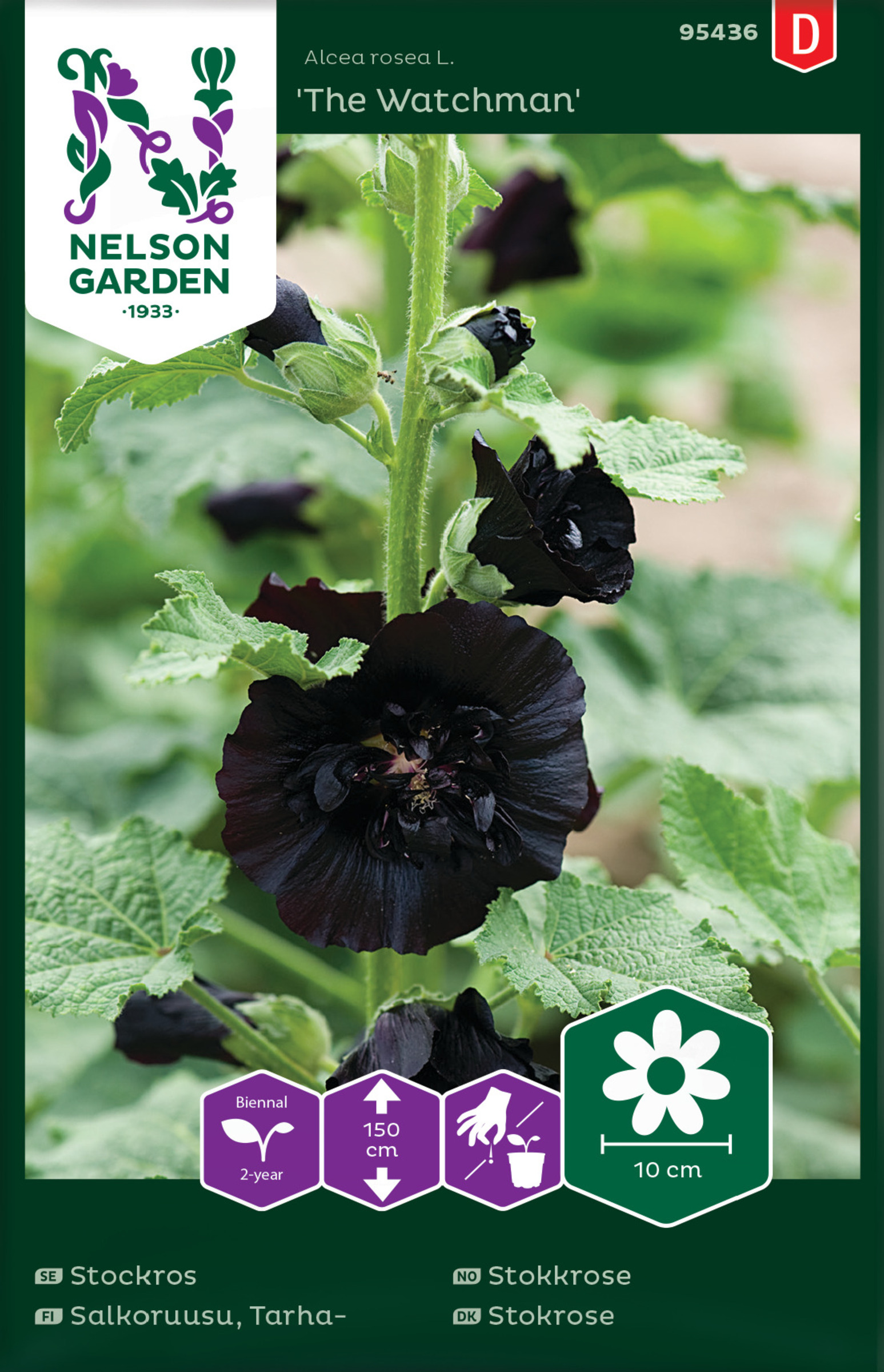 Denna sort har stora enkla blommor i mörkt rött, nästan svart. Odlas gärna mot en vägg. Blommar normalt året efter sådd, men kan vid tidig sådd blomma samma år (är då ett-årig). Skär av... Lue lisää