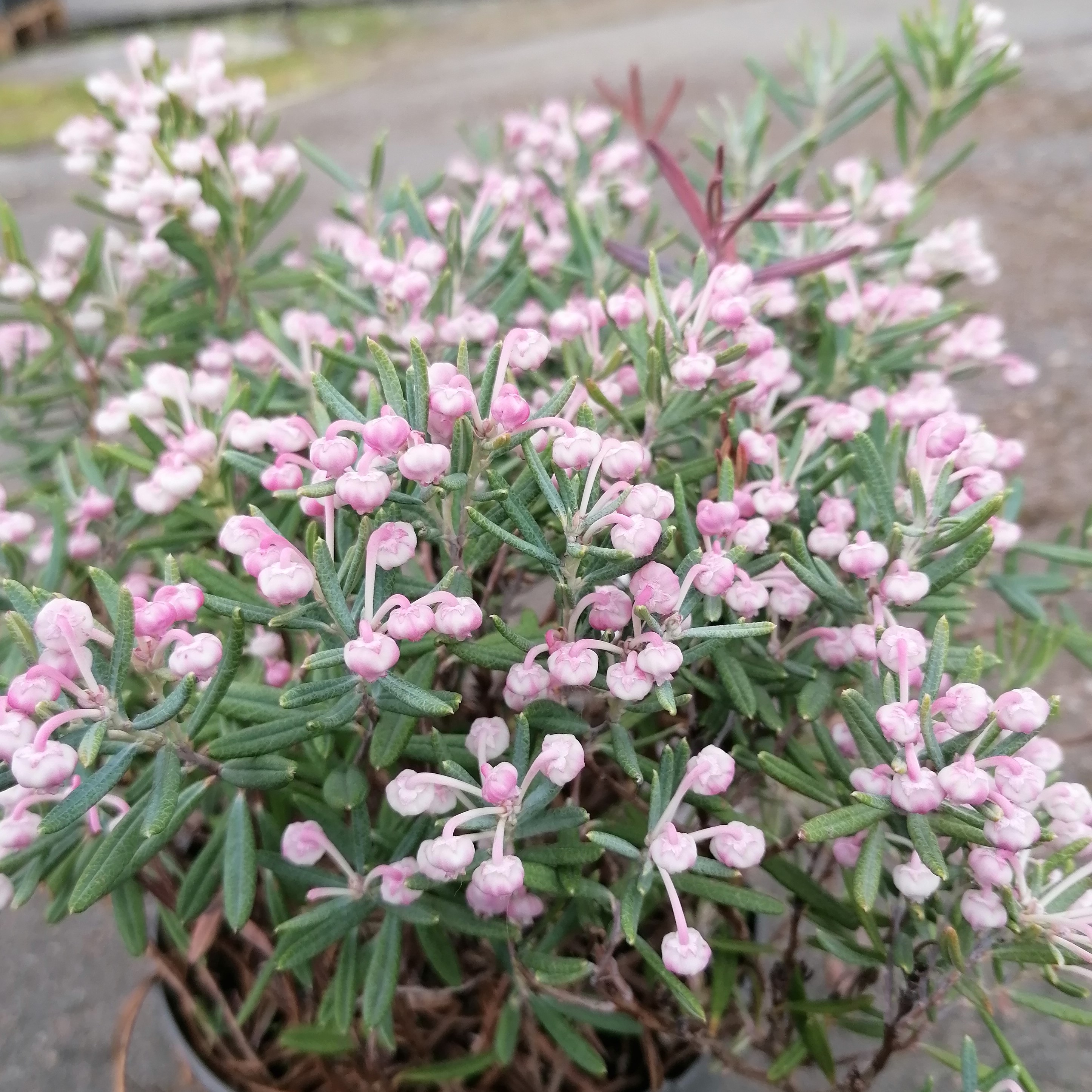Ikivihreä varpumainen kasvi, jonka kasvustot ovat hopeaisen siniharmaita, tuuheita ja pallomaisen pyöreähköjä. Kukkii alkukesällä vaaleanpunaisin, sirosti nuokkuvin pienin vaaleanpunaisin kukin. Sopii aurinkoisille tai puolivarjoisille kasvupaikoille esim. alppiruusujen seuraan. Viihtyy humuspitoisessa, happamassa ja kosteahkossa maassa. Suojaus kevätauringolta suositeltavaa.