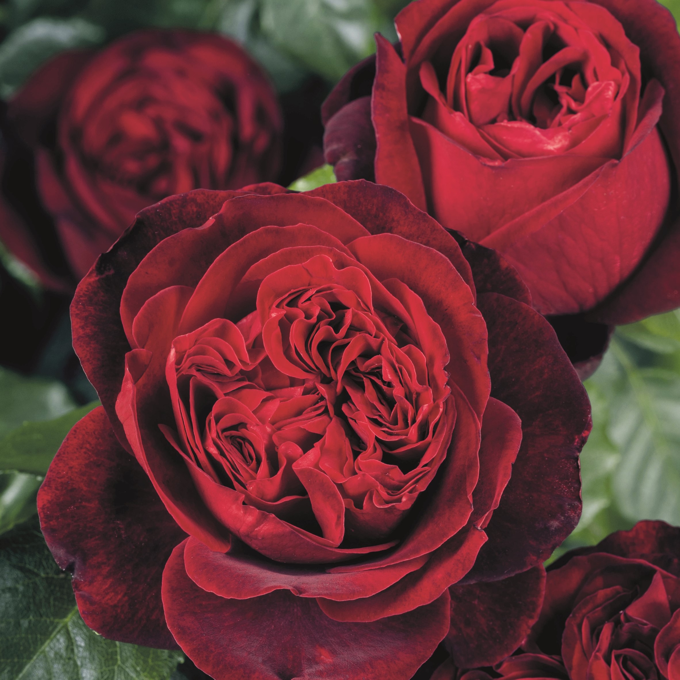 Upea samettisen punainen, suurikukkainen Nostalgia -sarjan ruusu. Mustanpunaisista nupuista puhkeavat kukat ovat täyteläisesti kerrottuja ja näyttävästi tumman rubiininpunaisia.