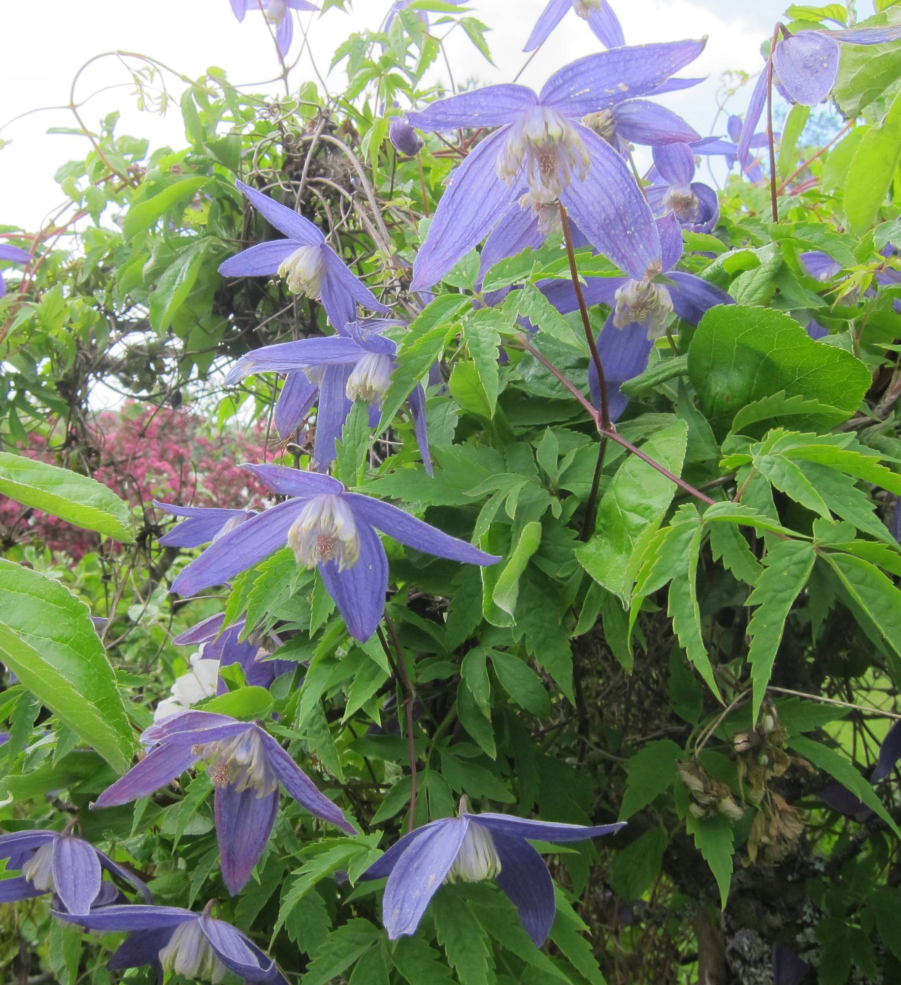 Suosittu tarha-alppikärhö, jonka kukkien terälehdet ovat sinivioletit ja kukan keskus valkoinen. Kellomaiset kukat nuokkuvat kauniisti ja alkukesän kukinta on runsasta. Kaunis puiden oksistoissa.... Lue lisää