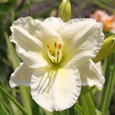 Kermanvalkoinen, nielusta vihertävänkeltainen päivänlilja, joka lämpiminä kesinä uusii hyvin kukintaansa.