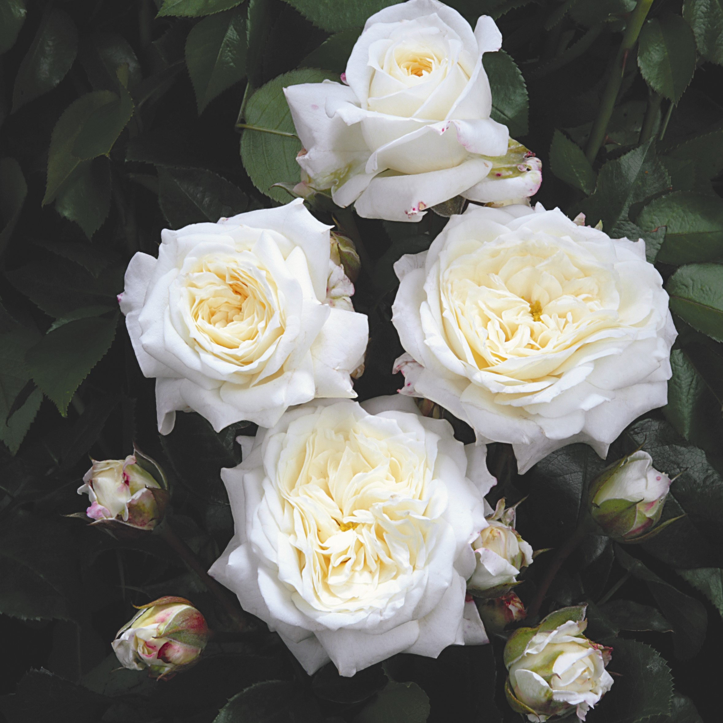 Erittäin kaunis floribundaruusu, jonka kukat ovat erittäin kerrotut, suuret ja kermanvalkoiset. Ne eivät juurikaan tuoksu, mutta kestävät todella pitkään kauniina. Kasvutavaltaa pyöreähkö, rehevä pensas tumman vihreällä ja erittäin kiiltävällä lehdistöllä. Peittää kasvualansa hyvin. Kukinnan ja lehdistön välillä on kaunis kontrasti. Istutusväli noin 0,3-0,5 m. Parhain kasvu aurinkoisella kasvupaikalla.