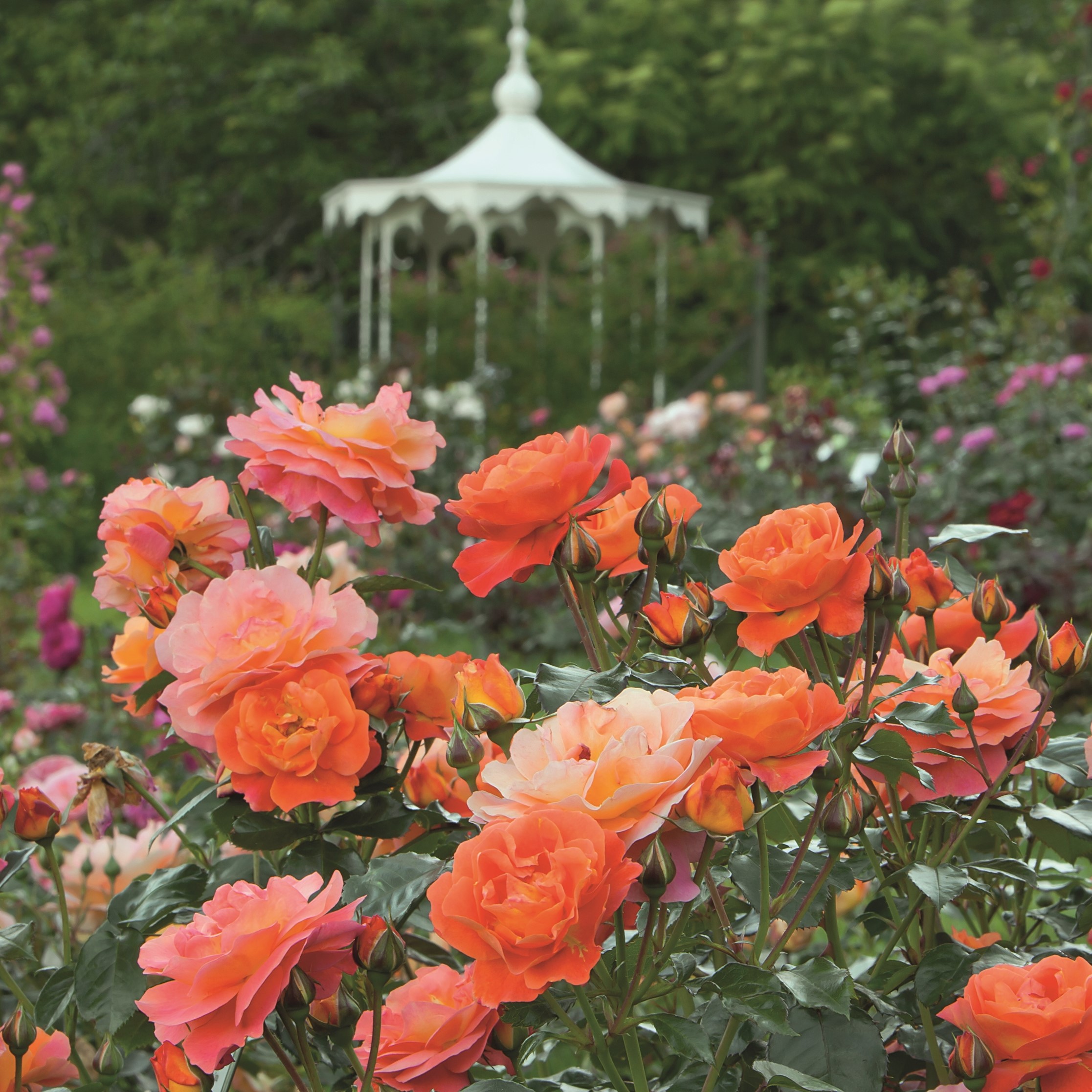 Hieno erikoisvärinen floribundaruusu! Löyhästi kerrotut, voimakkaan persikansävyiset kukat kasvavat runsaissa tertuissa, jotka suorastaan loistavat kesäauringossa. Kukat ovat miedon tuoksuisia. Lehdistö on erittäin taudinkestävä, kauniin tummanvihreää ja luo hienon taustan lämpimän sävyisille kukille. Upea puutarhan väripilkkuna, pieninä ryhminä tai terassin ruukuissa. Istutusväli noin 0,4-0,5 m.