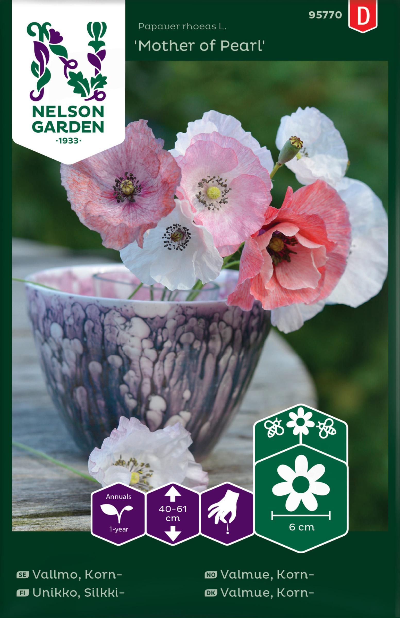 Tämän unikon silkinohuet terälehdet loistavat valkoisen ja vaaleanpunaisen sävyissä kukkapenkissä ja niityllä.