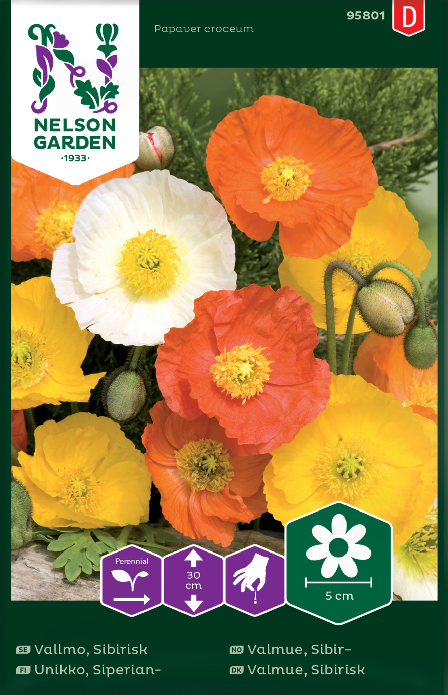 Flerårig, späd vallmo i lysande gula, orange och röda nyanser. Den är en intensiv färgklick i trädgården under lång tid. Mycket vacker tillsammans med blåklint, kinesisk riddarsporre och andra starkt blåblommiga växter. Den kan sprida sig något och bör få ett eget litet hörn av rabatten. Så i grupp för bästa effekt. Tål att odlas på torr och mager jord. Trivs bäst i lucker jord. Vattna vid torka. Blommar vanligtvis året efter sådd. Siperianunikko Monivuotinen hento unikko, jonka loistavissa kukissa on keltaisen, oranssin ja punaisen sävyjä. Vahva ja pitkään kestävä puutarhan väritäplä. Erittäin kaunis ruiskaunokkien, kiinanritarinkannusten ja muiden voimakkaan sinisten kukkien seurassa. Voi levitä jonkin verran ja tulisi istuttaa omaan nurkkaukseensa kukkapenkissä. Ryhmiin kylvettynä saadaan paras vaikutelma. Kestää kasvatuksen kuivassa ja niukkaravinteisessa maassa. Viihtyy parhaiten kuohkeassa maassa. Kastele kuivuuden vallitessa.
